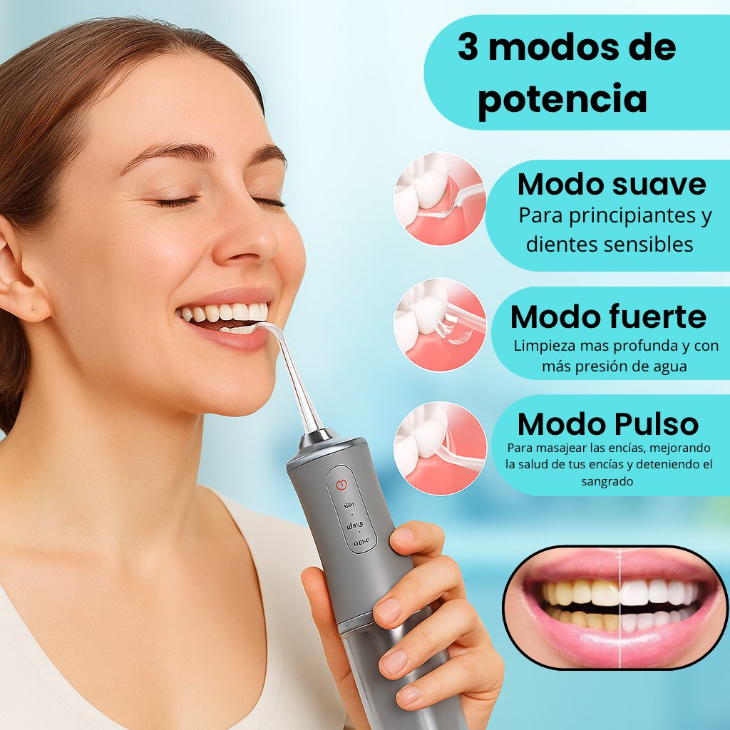 ¿Cansado de sangrado de encías, mal aliento y brackets difíciles de limpiar? Este irrigador dental profesional es la solución definitiva. Más de 20,000 personas ya transformaron su sonrisa y recuperaron su confianza.