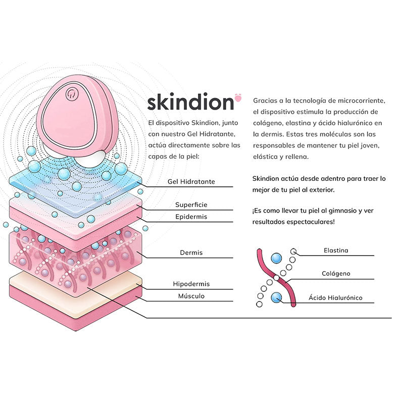 Transforma tu piel con Skindion, el revolucionario dispositivo de microcorriente que combate los signos del envejecimiento y te ayuda a lograr una piel más firme, radiante y joven.